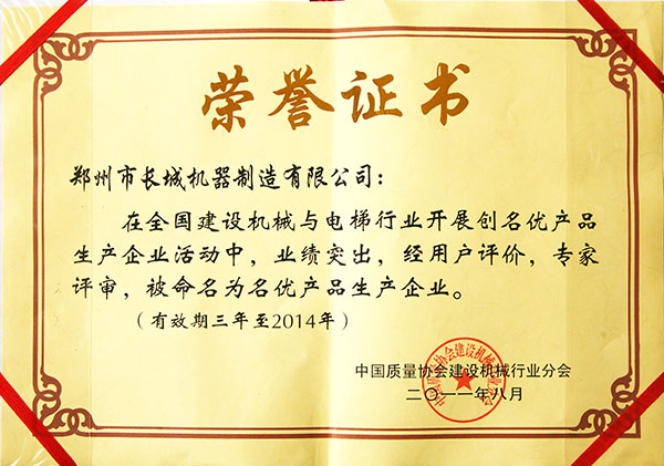 名優(yōu)產(chǎn)品生產(chǎn)企業(yè)證書