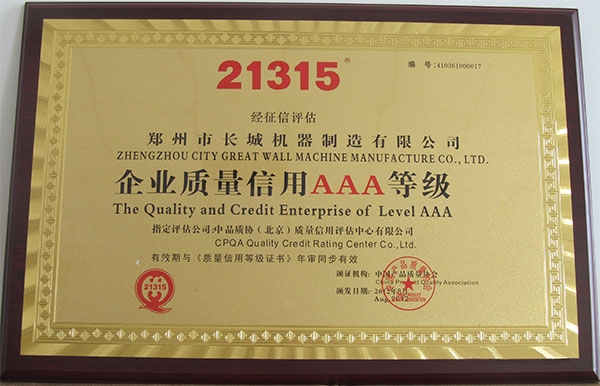 企業(yè)質(zhì)量3A等級獎牌