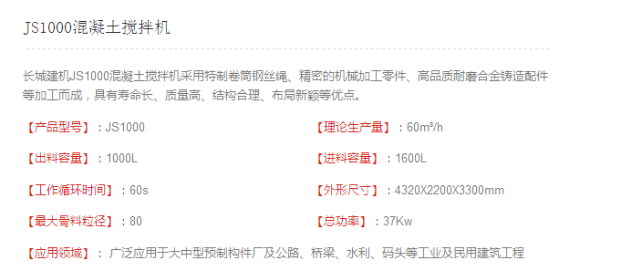 答:按照行業(yè)規(guī)定,JS代表雙臥軸強制攪拌,1000代表此混凝土攪拌機的出料容量是1000L,也就是常說的1.0立方。