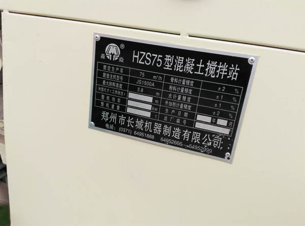 混凝土1.5方攪拌機主機銘牌