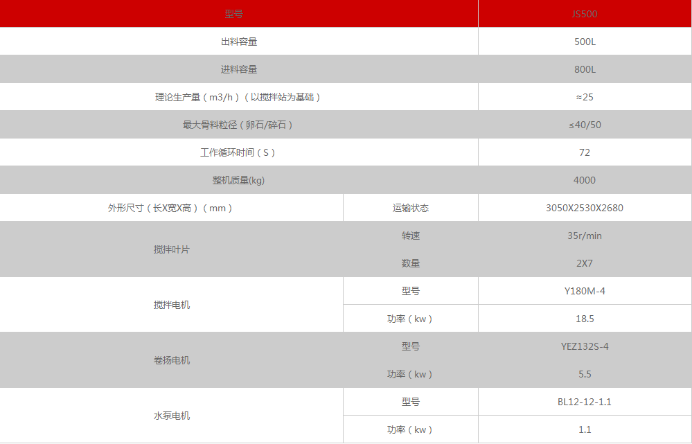 JS500混凝土攪拌機(jī)技術(shù)參數(shù)