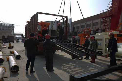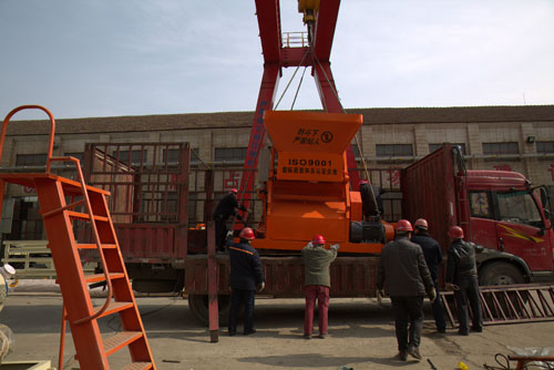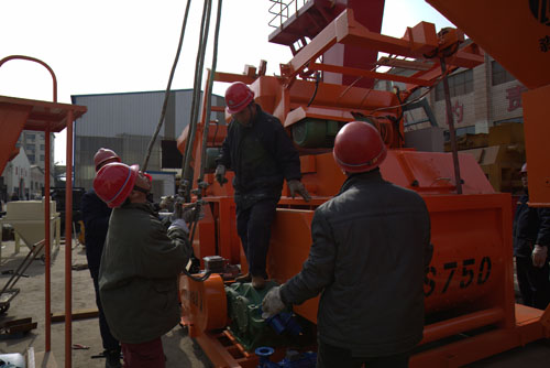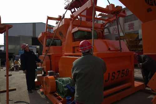 長城建機js750強制式攪拌機裝車現(xiàn)場圖