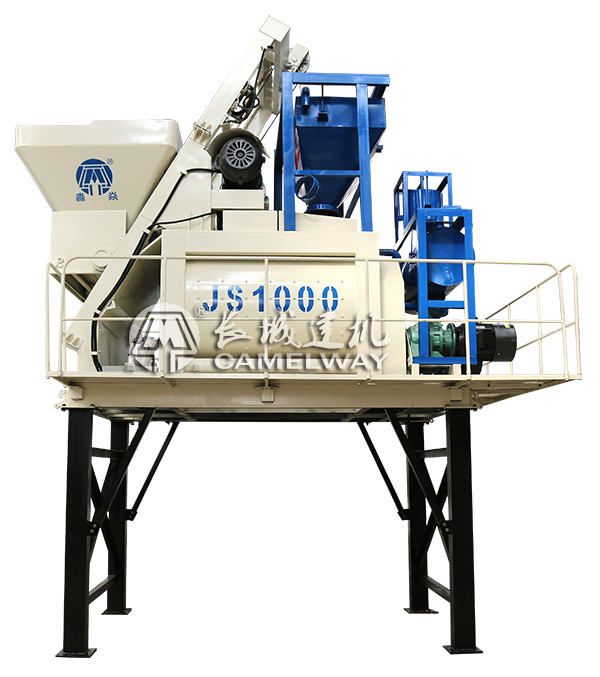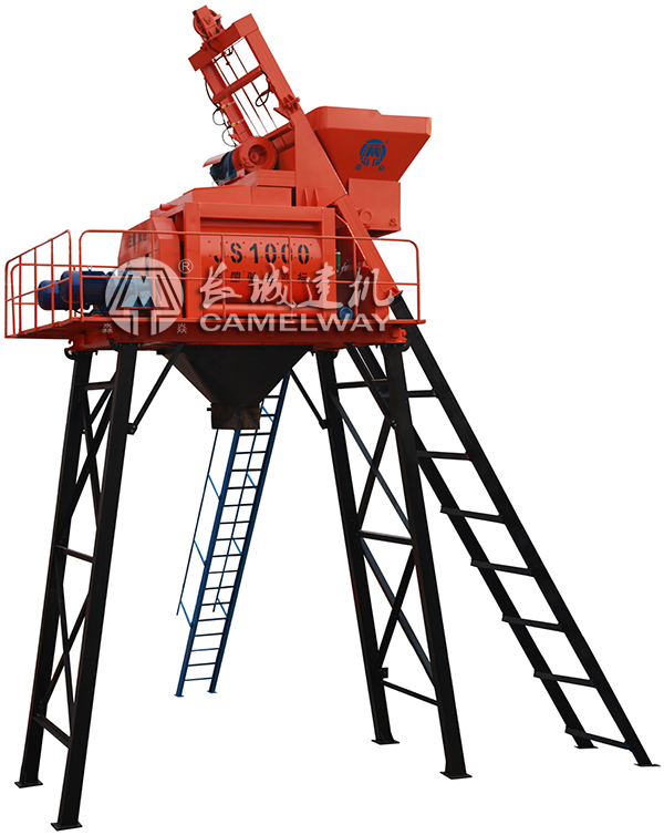 長(zhǎng)城JS1000強(qiáng)制式攪拌機(jī):加水量控制方便 分為:皮帶上料 提升上料;